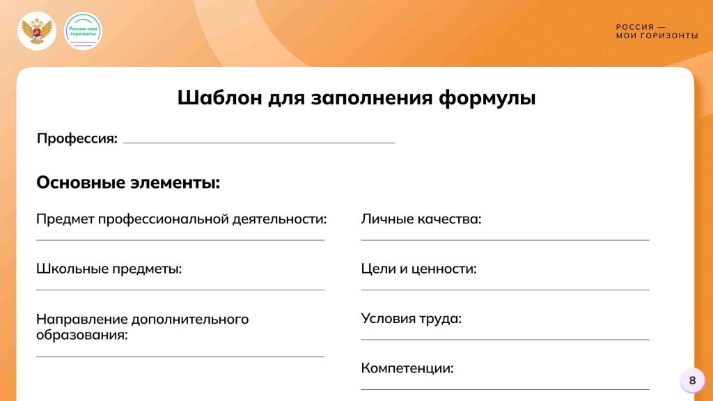 Формула выбора профессии — это определённая последовательность символов, которая помогает найти решение задачи. Её можно сравнить с рецептом: как в рецепте прописаны шаги для приготовления блюда, так и формула указывает путь к правильному решению. Формулы упрощают сложные вещи, делая их понятными. Сегодня ребята попробовали составить формулу выбора профессии, которая будет вашим ориентиром в будущем.