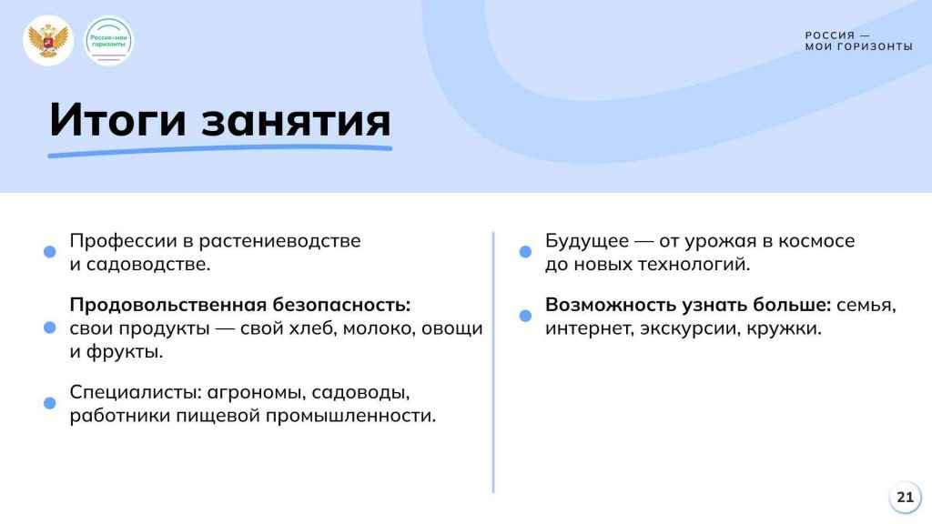 Мы поговорим о том, что такое аграрные отрасли, аграрная профессиональная среда. Узнаем о различных отраслях и профессиях, связанных с сельским хозяйством, поиграем и посмотрим видеоролики, которые откроют для нас много нового. Также разберёмся, какие школьные предметы связаны с аграрной средой и куда можно пойти учиться тем, кому это интересно. В занятии приняло участие 24 педагога и 615 учащихся.