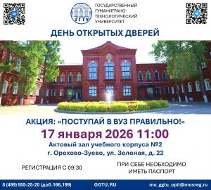 Государственный гуманитарно-технологический университет (ГГТУ) приглашает выпускников учреждений среднего общего и среднего профессионального образования, а также их родителей (законных представителей) на профориентационную акцию «Поступай правильно!».